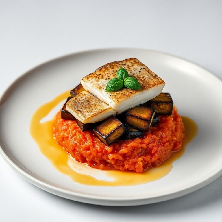 - Saint-Pierre Rôti, Risotto Crémeux et Sphères d'Aubergine Croustillantes