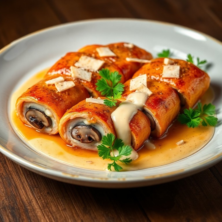 Paupiettes de Porc aux Champignons et Crème sur Riz Pilaf