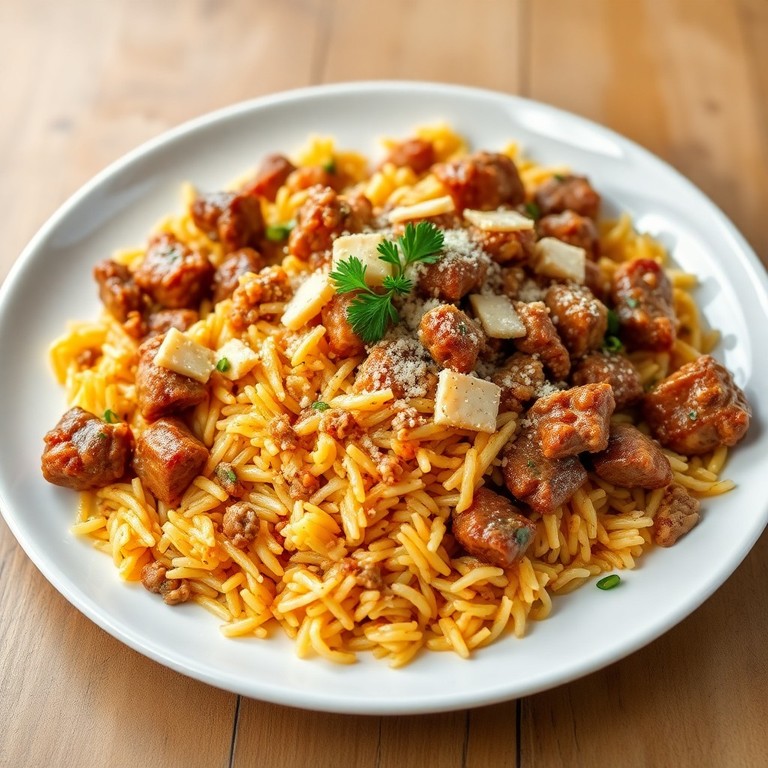 Riz Sauté Deluxe au Steak, Pâté et Crème Fine