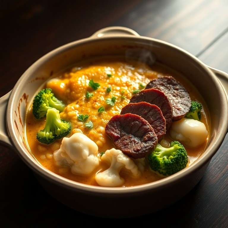 Gratin de Riz, Chou-fleur et Brocoli au Faux Filet, Crémé Végétal