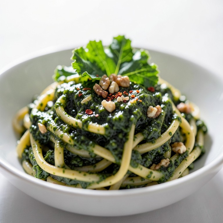 Pâtes au pesto de chou frisé et noix