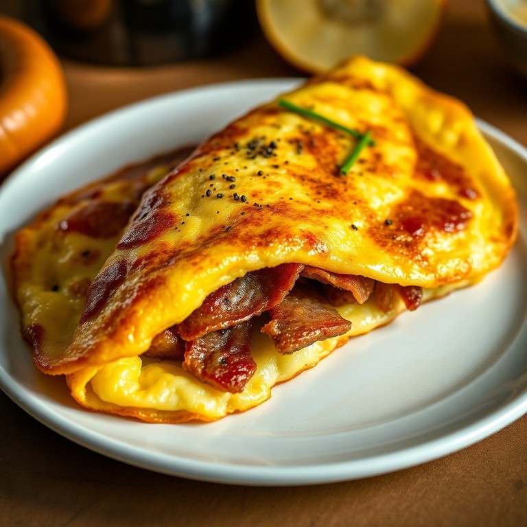 Omelette Gourmande aux Lardons, Crème Fraîche et Poivre