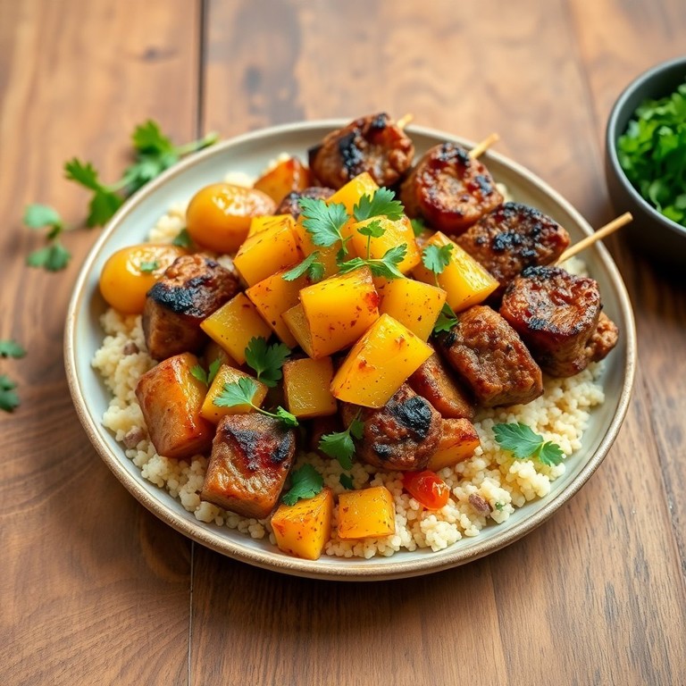 - Patates Rôties au Couscous et Ananas avec Viande à Kebab