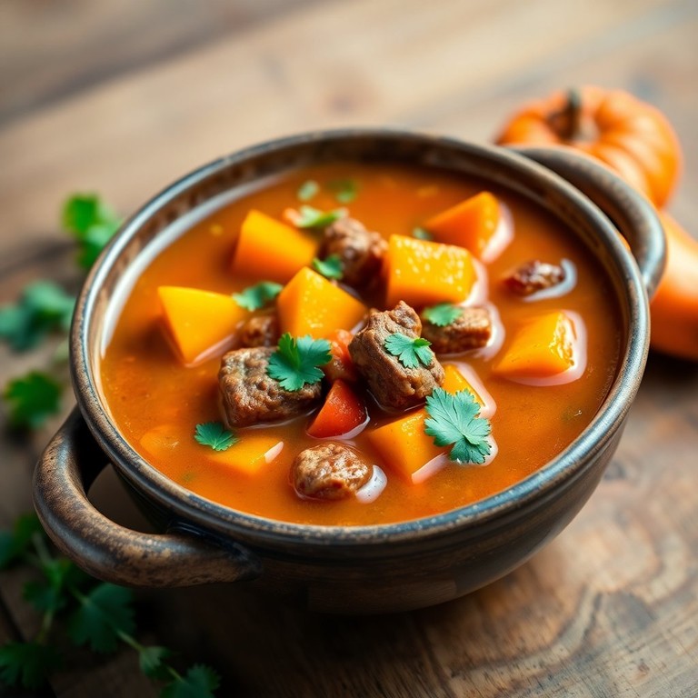 Sopa de Zapallo y Carne con Verduras Frescas