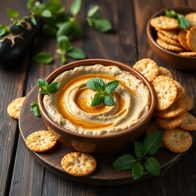 Hummus de Berenjena con Galletas Soda y Decoración de Menta