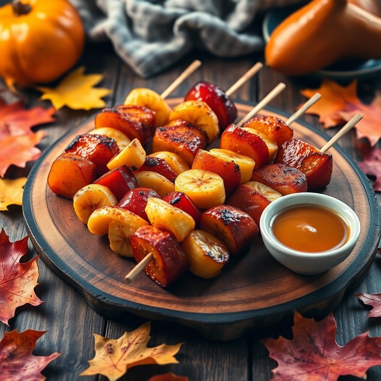 Brochettes de fruits d'automne grillées, sauce miel-épices