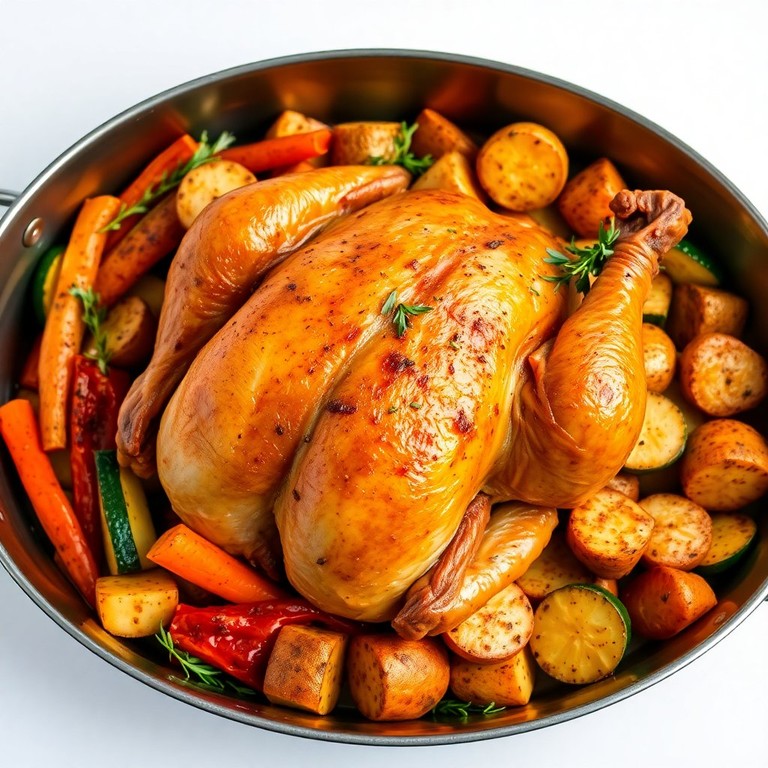 Poulet Rôti aux Légumes de Saison et Pommes de Terre Croustillantes