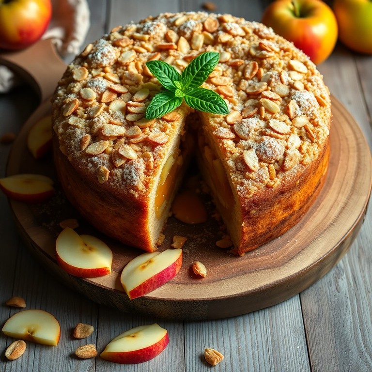 Gâteau Crumble aux Pommes Caramélisées et Amandes
