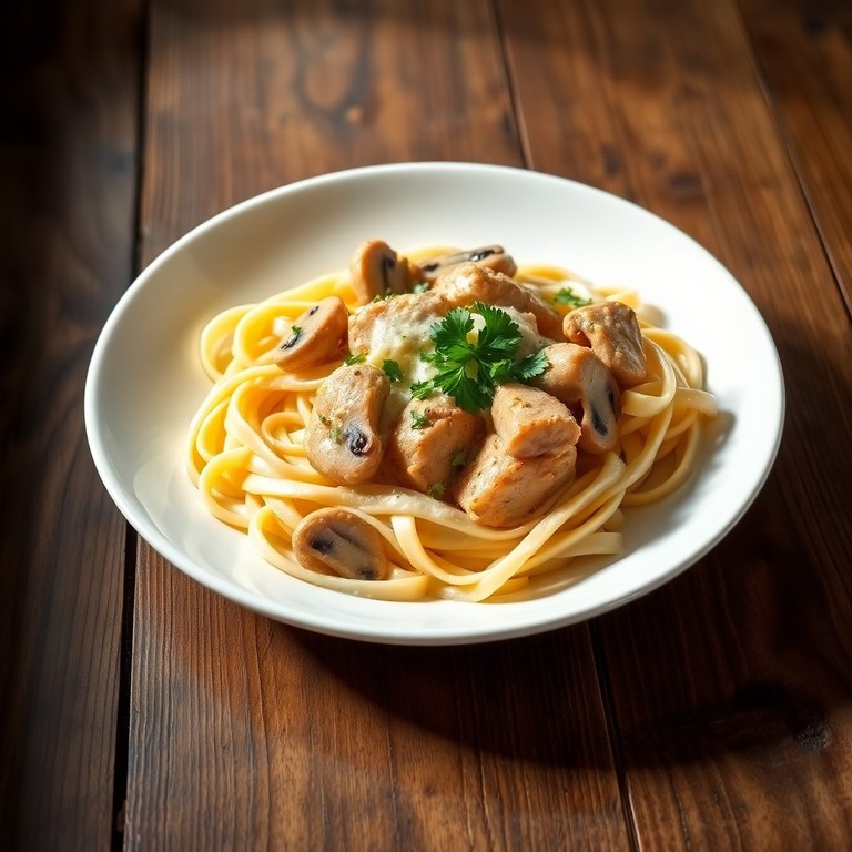 Poulet à la crème et aux champignons sur tagliatelles