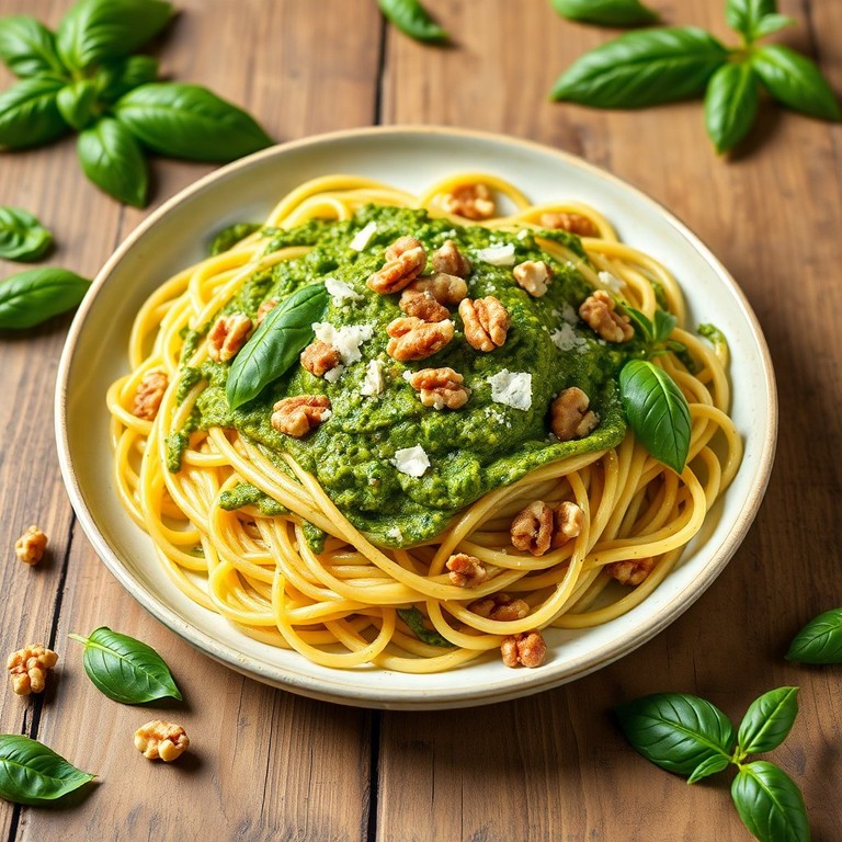 Pâtes au Pesto de Basilic et Noix avec une Touche de Croquant