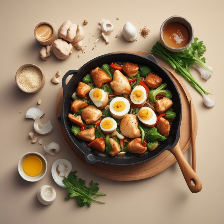 Poulet Oignons Oeuf Saute