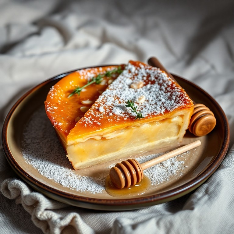 Tarta de Maíz Tostado y Miel con Infusión Exótica y Decoración de Frutas Secas