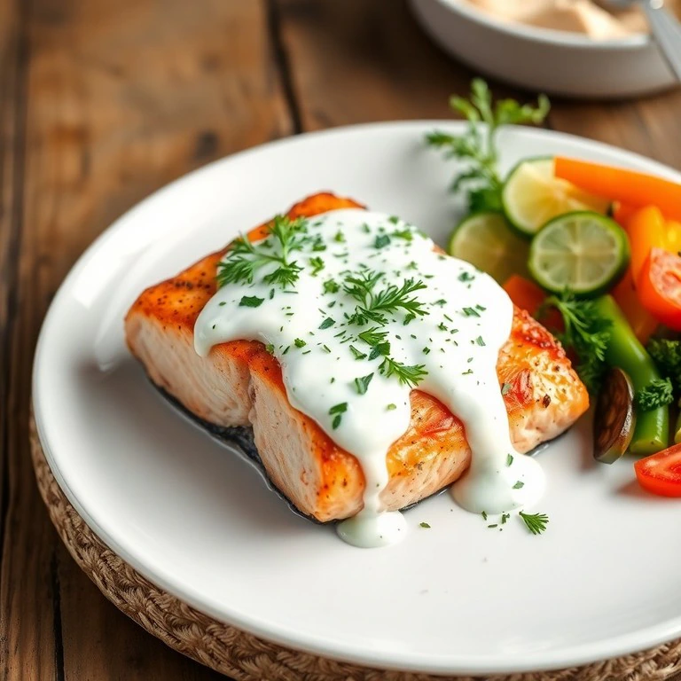 Salmão Grelhado com Molho de Iogurte e Ervas