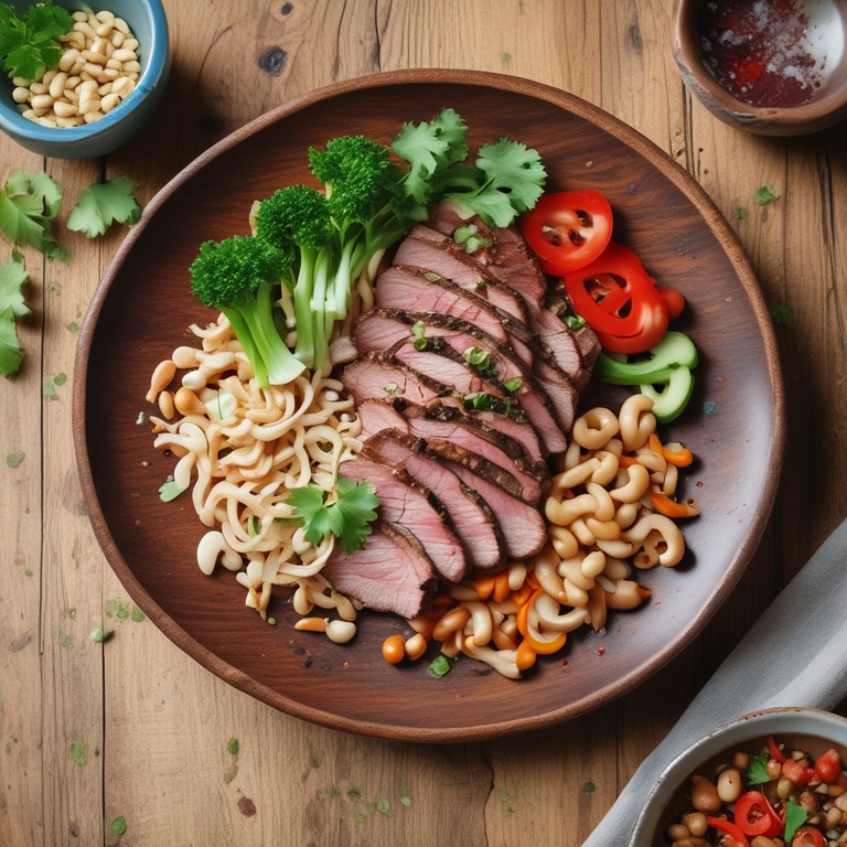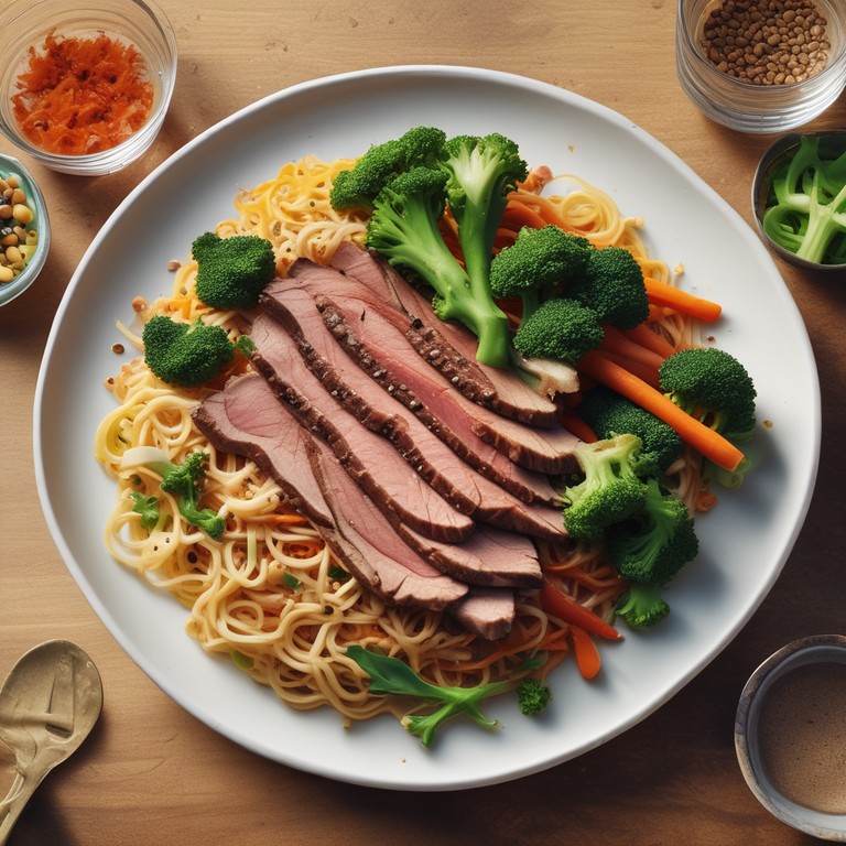 - Tataki de Boeuf Mariné avec Nouilles Sautées et Légumes Croquants