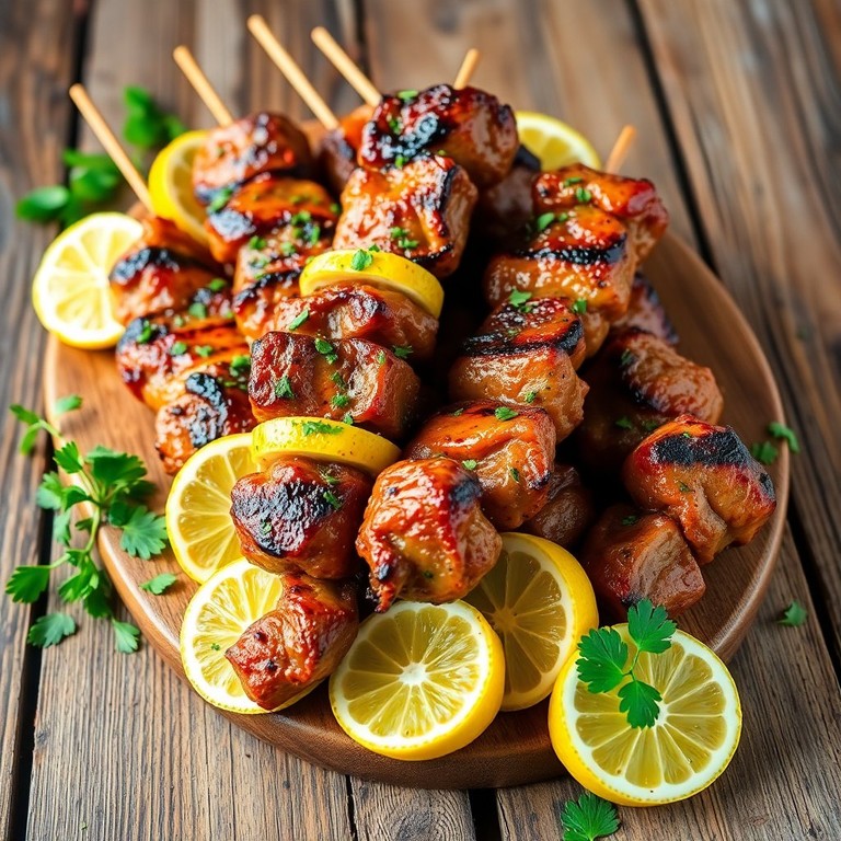 Brochettes de Viande Acher Marinées au Citron et Herbes