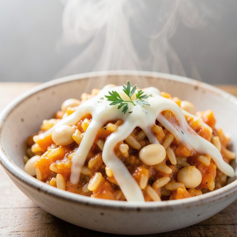 - Riz sauté à la crème de courge, mozzarella et haricots blancs