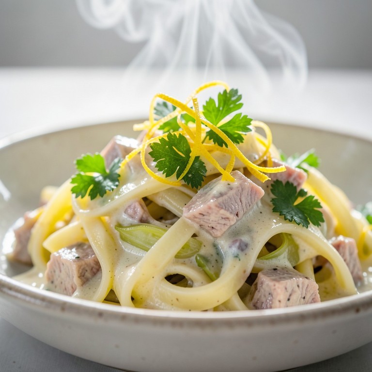- Pâtes crémeuses au thon, poireaux et zeste de citron