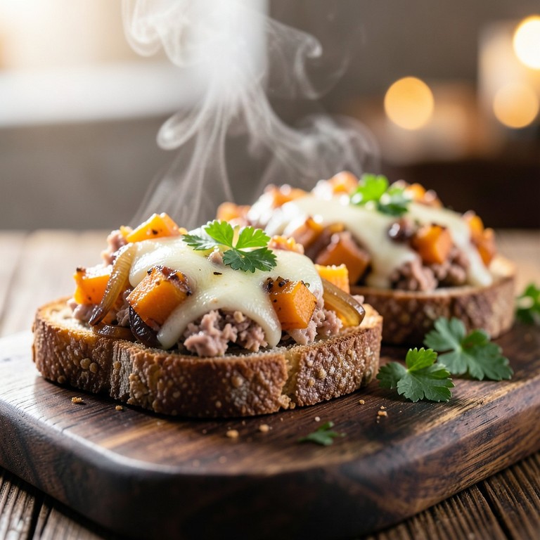 - Tartines gourmandes au thon, mozzarella et potimarron rôti