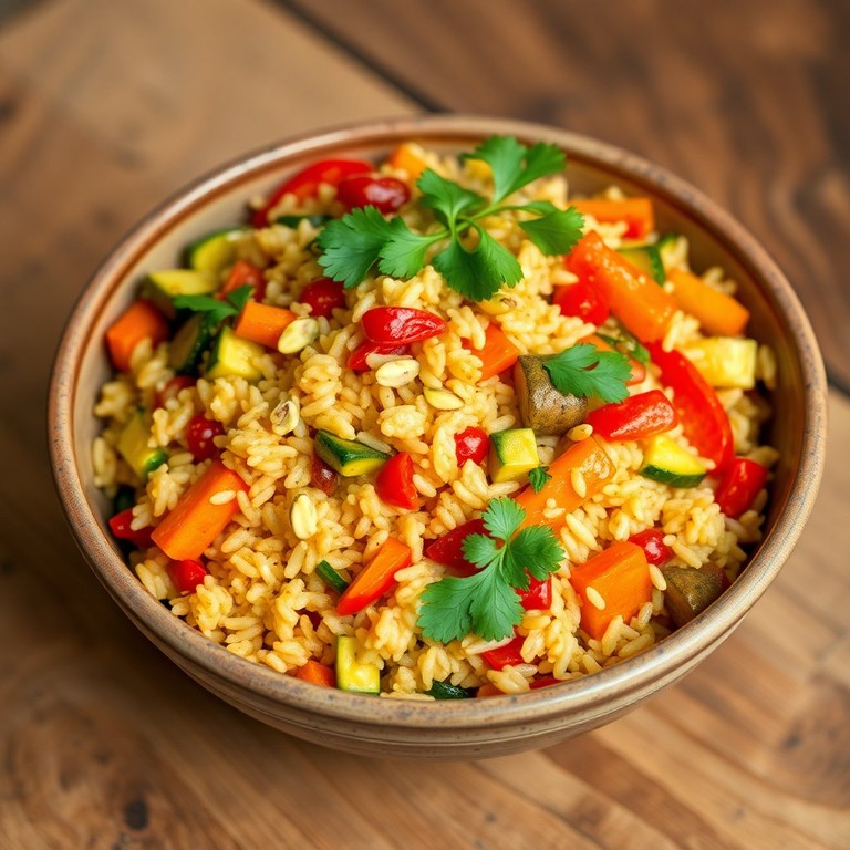 Riz Sauté aux Pistaches et Légumes Colorés