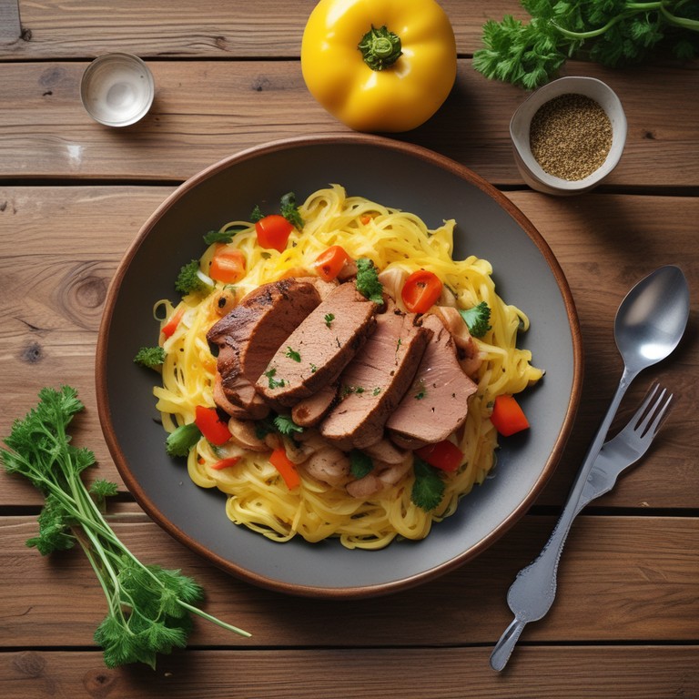 Spaghetti de Courge au Filet de Porc et Légumes Sautés (Sans Ail, Sans Miel)