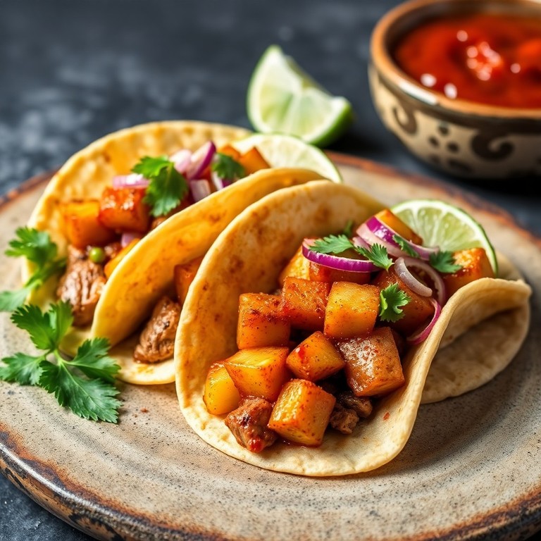 Tacos de lomo y patatas en estilo mexicano en freidora de aire