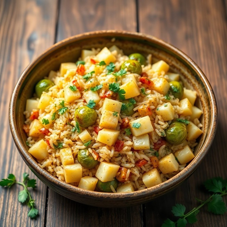 Riz Sauté aux Choux de Bruxelles et Pommes de Terre