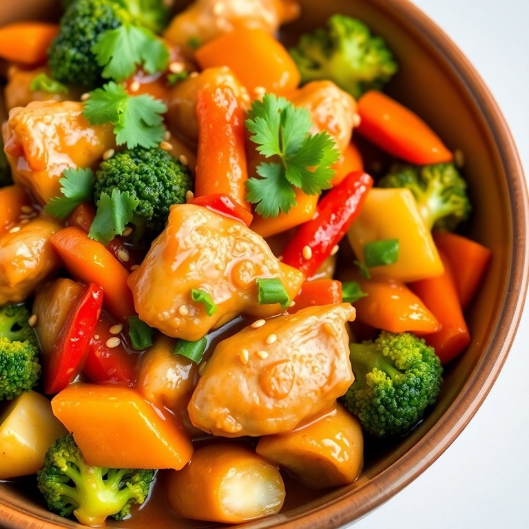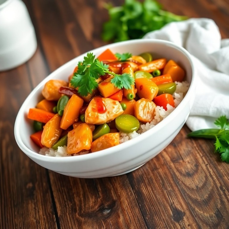 Poulet Sauté aux Légumes Asiatiques et Sauce Aigre-Douce