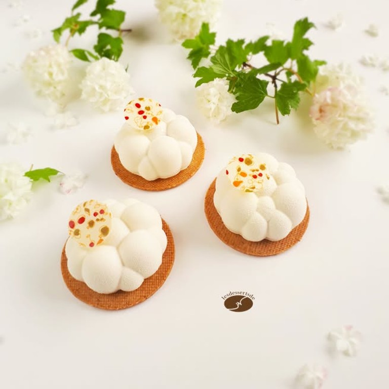 - Entremets Dulcey, cœur de pommes rôties au beurre salé, croustillant spéculoos