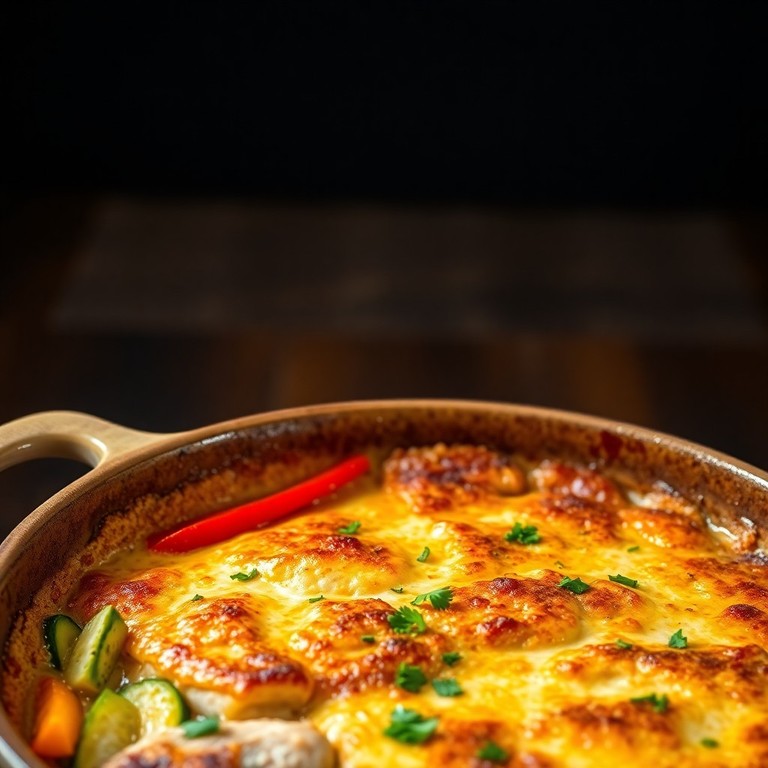 Gratin de Poulet Crémeux aux Légumes et Ail