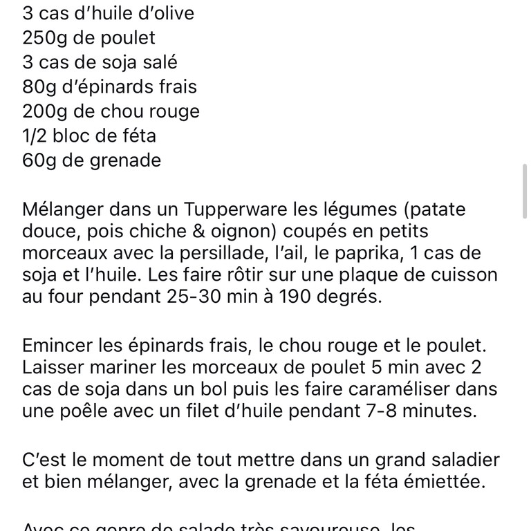 Salade de Poulet et Patate Douce Rôtie