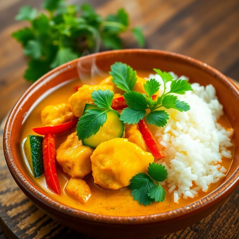 Poulet au Curry Gaya (Style Coréen) Coco et Menthe Fraîche avec Légumes Croquants