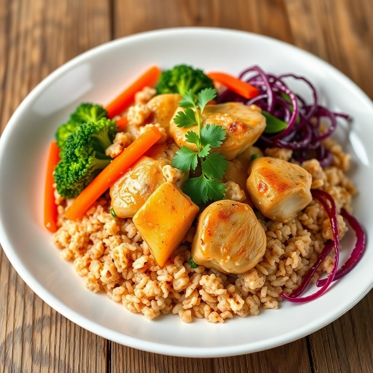 Poulet aux légumes croquants et riz complet