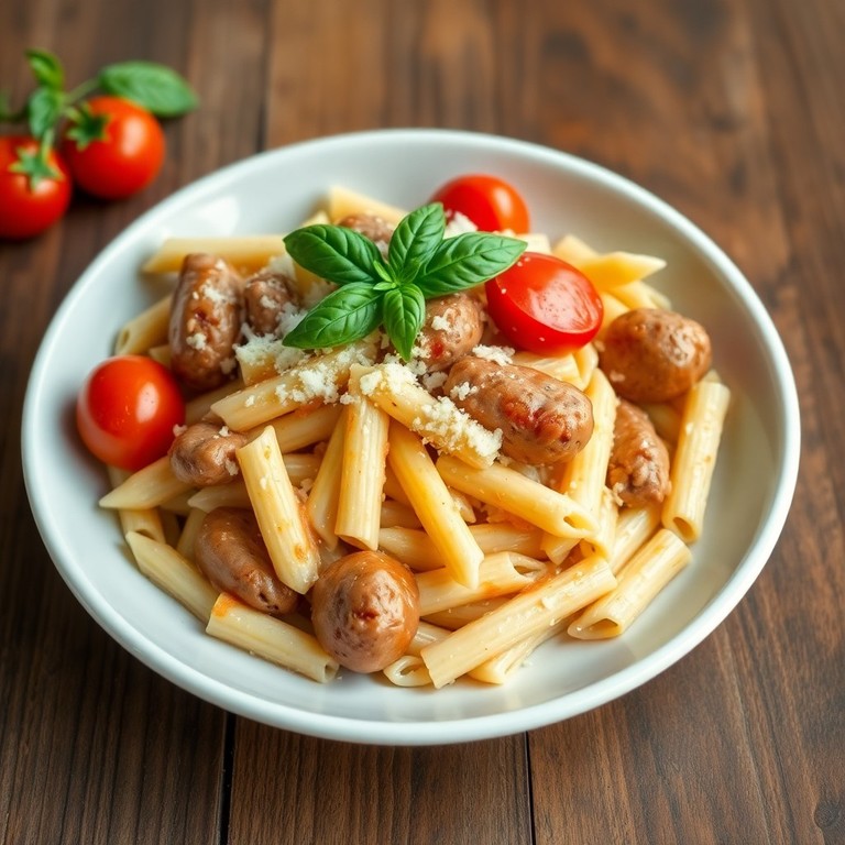 Pâtes sautées aux Chipolatas et Tomates Cerises à la Crème