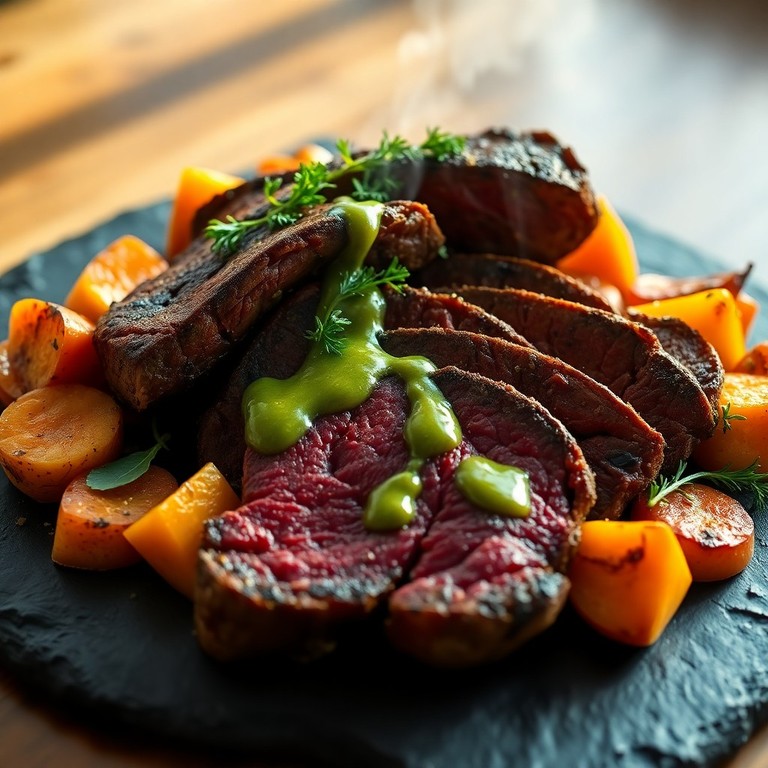 Rôti Végétal Façon 'Bœuf' aux Herbes et Légumes Racines au Four