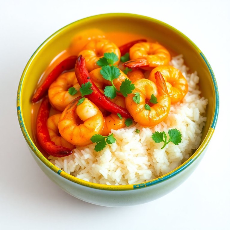 Gambas Sautées au Lait de Coco et Poivron Rouge