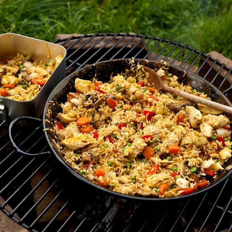 Gebakken rijst met kip en veel groenten