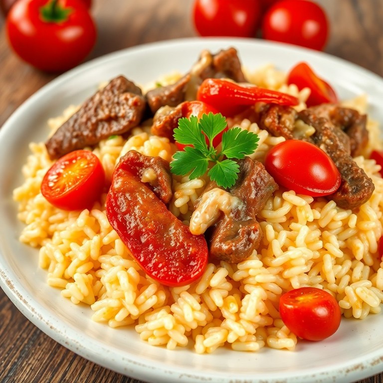 Arroz Cremoso con Carne y Pimientos Asados