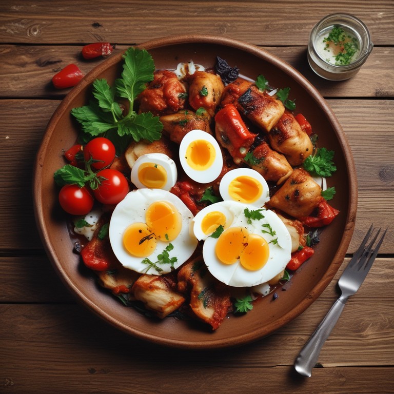 Pollo a la Berenjena con Salsa de Tomate y Huevos