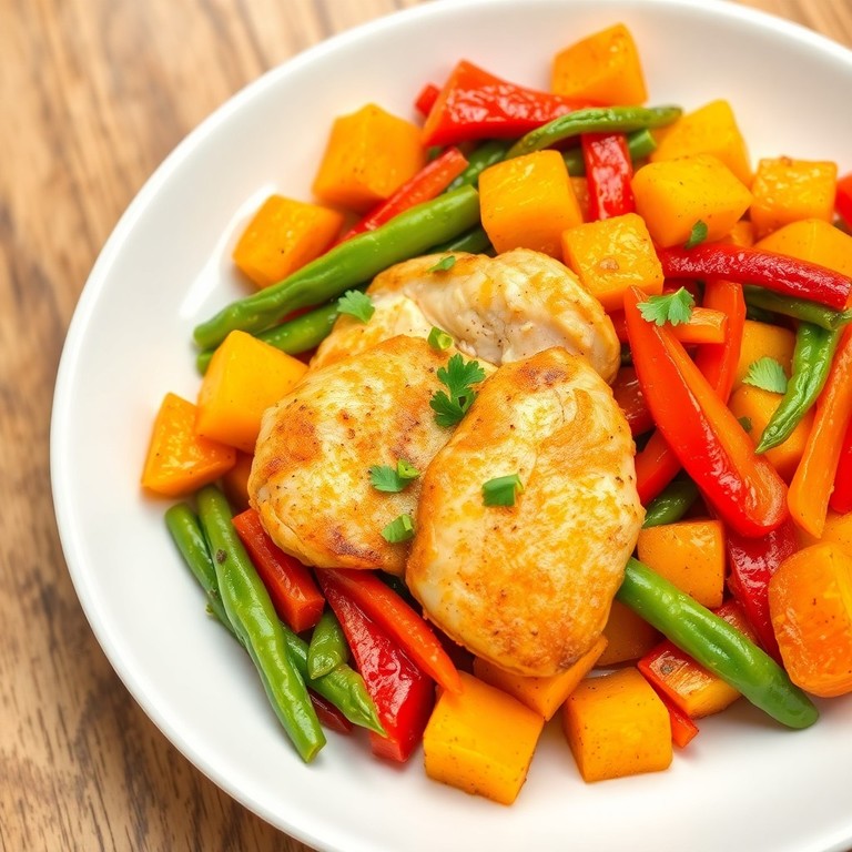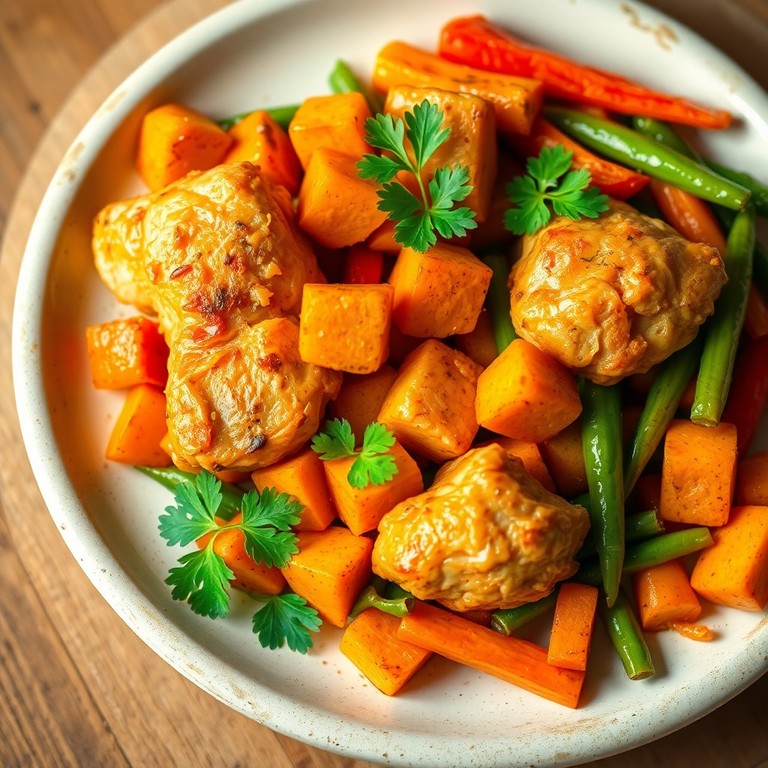 Poulet aux patates douces et légumes colorés