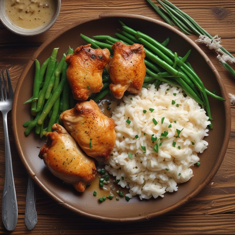 Cuisses de Poulet à la Crème et Champignons avec Riz et Haricots