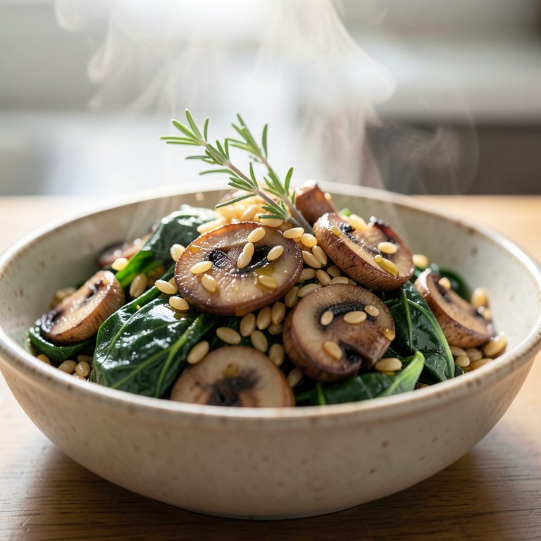 - Poêlée de blé aux champignons et épinards