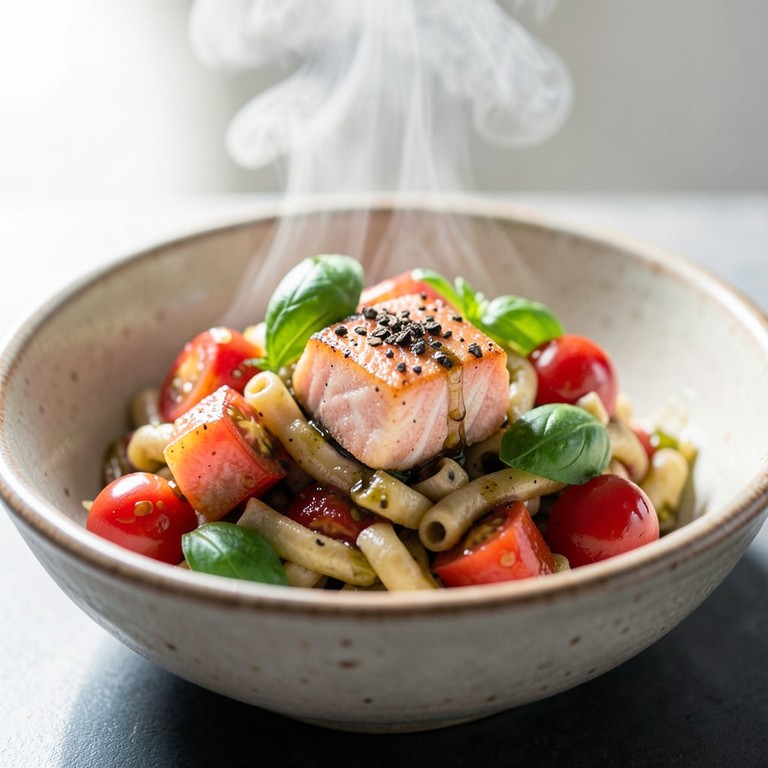 - Pâtes au Saumon, Tomates Cerises et Basilic Frais