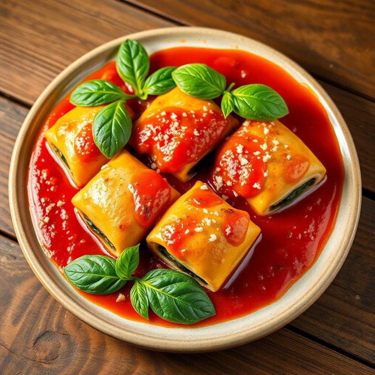 Rollitos de Pollo Rellenos a la Florentina en Salsa de Tomate