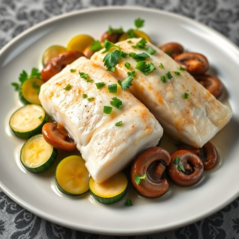 - Filet de poisson aux courgettes et champignons en sauce à la crème fraîche