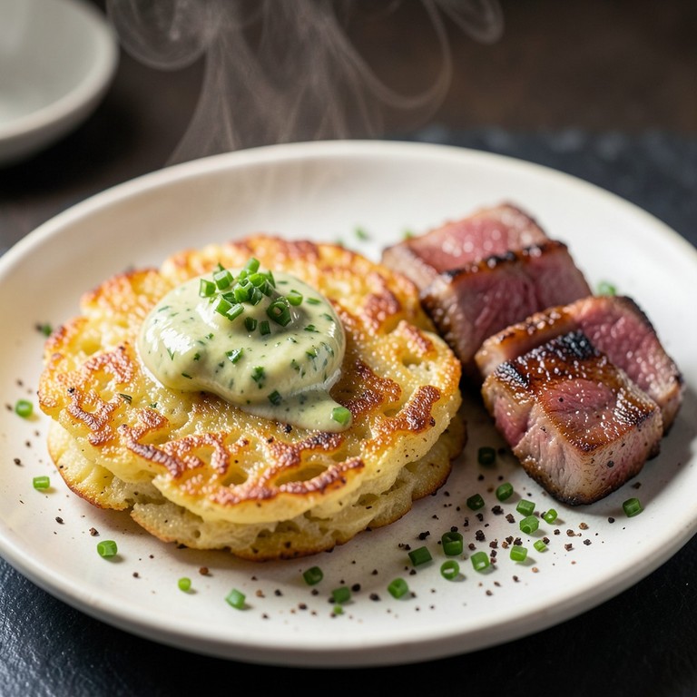 Galettes de Pommes de Terre Râpées, Filet Mignon Émincé et Beurre Ail-Persil Express