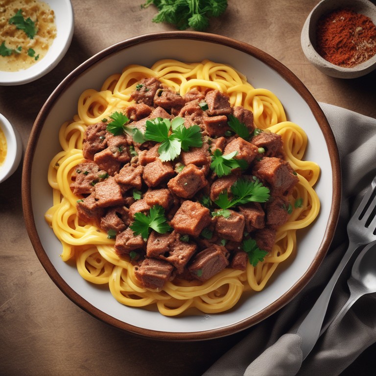 Macarrão com Carne Moída e Batata Americana