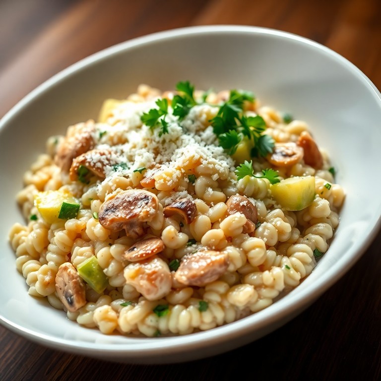 Risotto Crémeux aux Champignons de Paris, Poulet et Courgettes