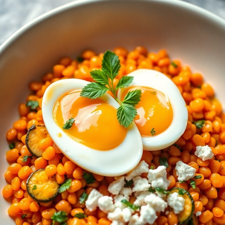 - Salade Tiède de Lentilles Corail et Courgettes Sautées à l'Œuf Mollet