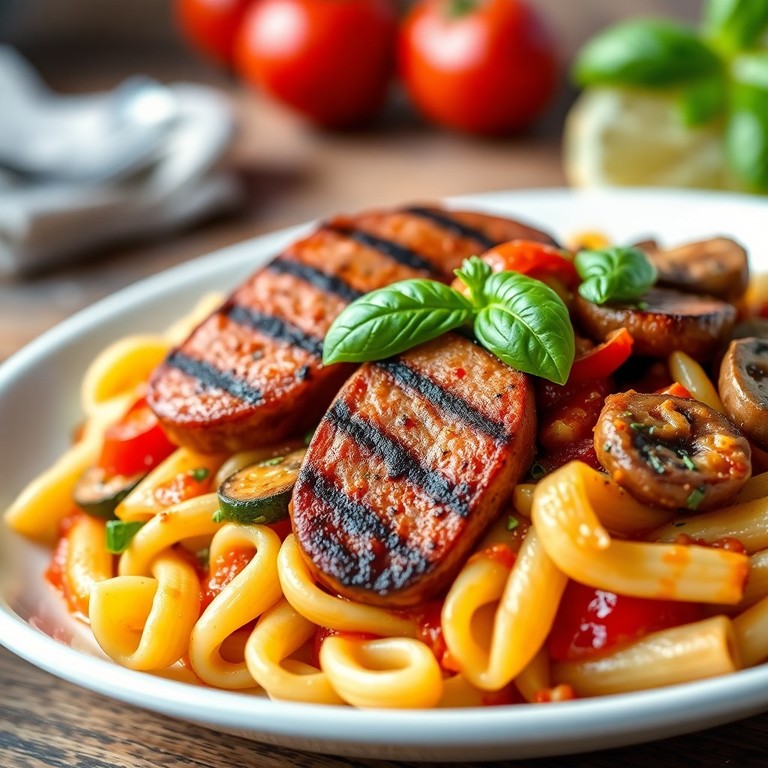 - Pâtes Méditerranéennes aux Saucisses de Toulouse et Légumes du Soleil