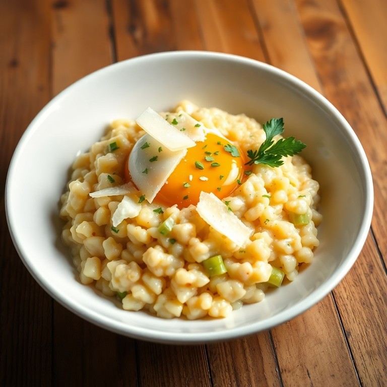 Risotto Crémeux aux Poireaux, Œuf Poché et Parmesan